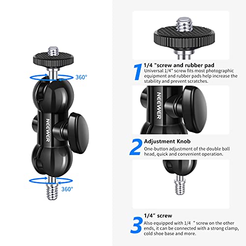 NEEWER Morsetto di Montaggio per Fotocamera con Adattatore Doppia Testa a Sfera, Compatibile con SmallRig Gabbia per fotocamera, per Monitor Webcam, Pannello Luce Video LED Mic Flash, ST10