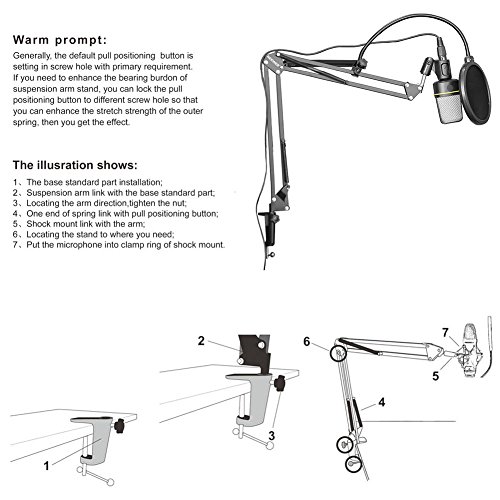 Composto da 3 pezzi: 1* Scissor Arm Stand con Microfono Morsetto + 1* Morsetto da Tavolo + 1* Cavo