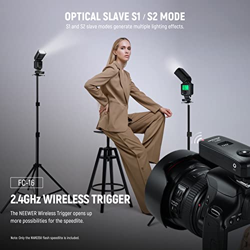[Leggerezza & Trasportabilità] Usare 4 batterie alcaline AA (NON incluse) o 4 al nichel-metallo idruro (NON incluse) per alimentare il flash, il quale è leggero e quindi viene montato direttamente sulla fotocamera senza aggiungerci nessun peso extra. La custodia protettiva tiene il flash al sicuro durante il trasporto.