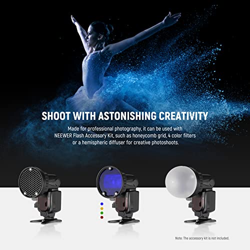[Flash Output Regolabile] La potenza output del flash è regolabile tra 1/1 e 1/128 per diverse condizioni d'illuminazione ambientale. Il breve tempo di ricarica di 3,5 secondi e la durata di flash di 1/300s-1/20000s consentono di catturare ogni momento della vita. La stabile temperatura del colore di 5600K (±200K) offre un colore uniforme a tutti gli scatti.