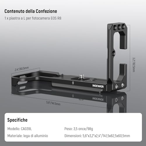 NEEWER R8 Piastra L Compatibile con Canon EOS R8 Fotocamera, Piastra Laterale Estensibile Alluminio/Base Antitorsione Tipo Arca +Interruttore Rapido L, Compatibile con DJI RS 2 RSC 2 RS 3 Pro, CA039L
