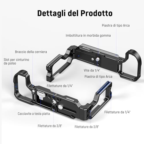 【Compatibile con Nikon Z 8】 Compatibile con la fotocamera Mirrorless Nikon Z 8, questa piastra a L in lega di alluminio lavorata a CNC mantiene i pulsanti funzione, le porte, gli slot per schede, il vano batteria e lo schermo LCD completamente accessibili. Un braccio della cerniera del vano batteria consente di sostituire facilmente le batterie