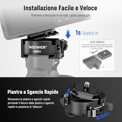 NEEWER Kit Piastra a Sgancio Rapido Tipo Arca, Piastra di Montaggio per Fotocamera QR Quadrata Compatibile con Design PD Peak, Filettatura 1/4" 3/8" Compatibile con DJI RS Gimbal, GM31