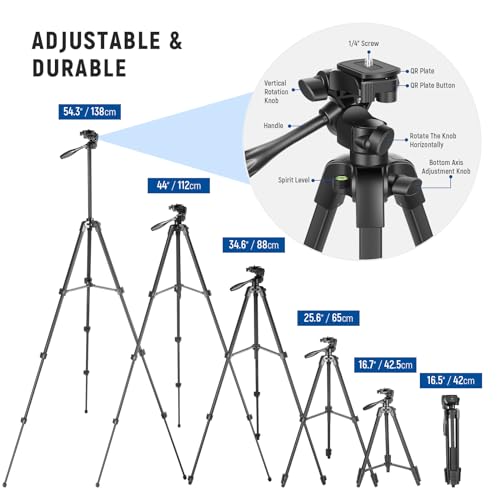 TRÉPIED LEGGERO E STABILE: i piedini in lega di alluminio regolabili in 4 sezioni con serrature a sgancio rapido consentono di regolare l'altezza di lavoro da 40 a 137 cm in pochi secondi e di piegarsi in 42 cm. Testa panoramica a 3 vie con un pratico manico permette un movimento di inclinazione e rotazione;