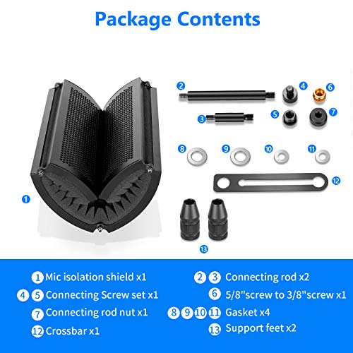 Neewer Professionale Schermo Pannello d'Isolamento per Microfono, Schermo a 4 Sezioni con Frontale in Schiuma Assorbente a Densità Alta & Piastra Posteriore in Metallo Ventilato, per Blue Yeti ecc.