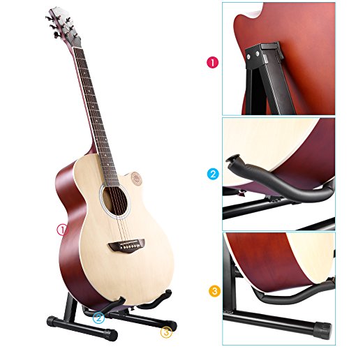Neewer Supporto da pavimento per chitarra elettrica, in due pezzi, portatile, universale, pieghevole, telaio A, strumenti musicali stabili, base in ferro / nero