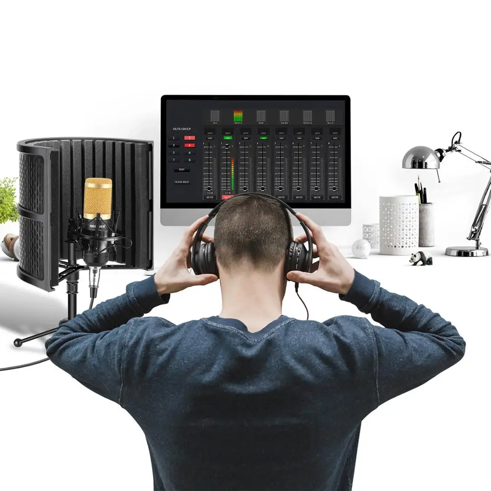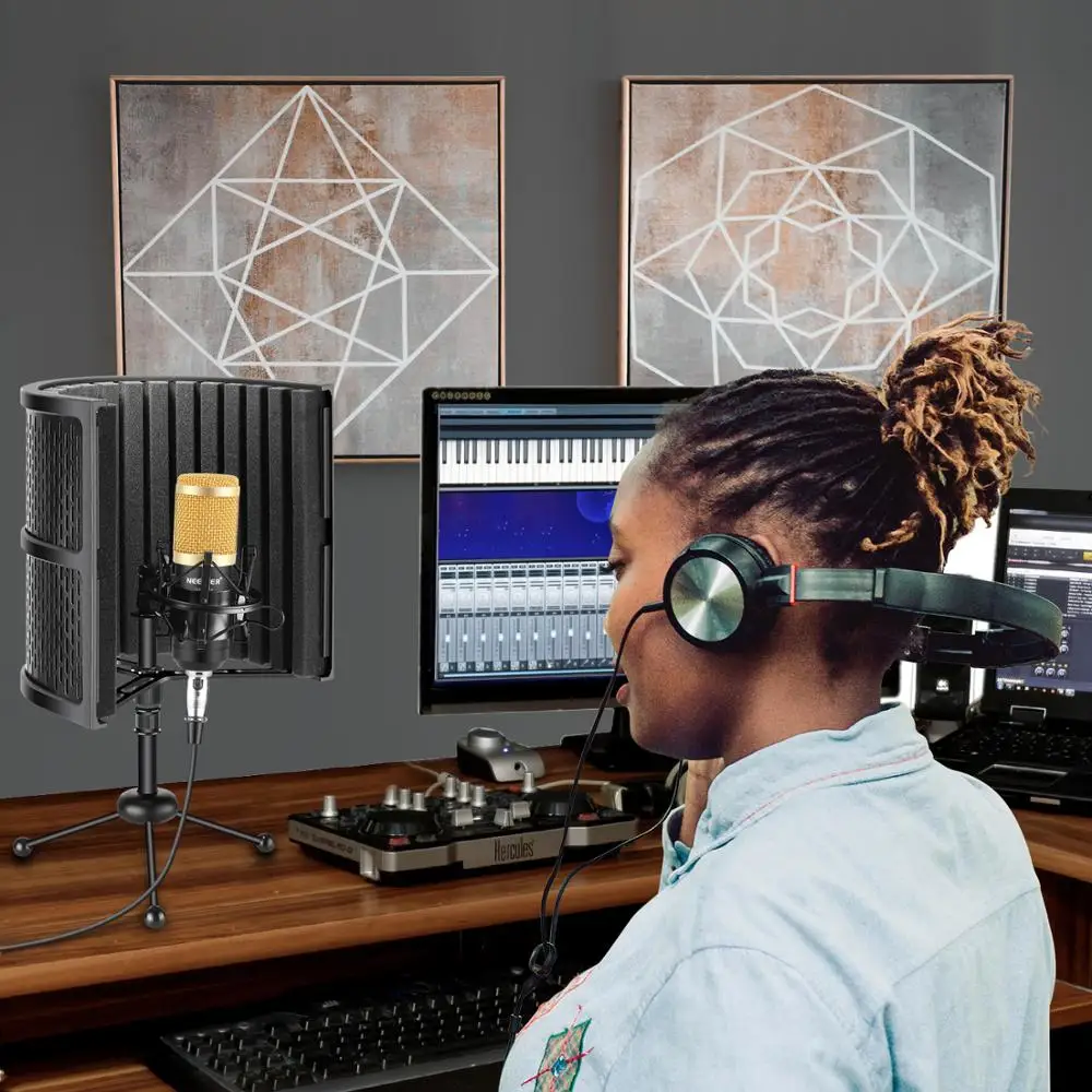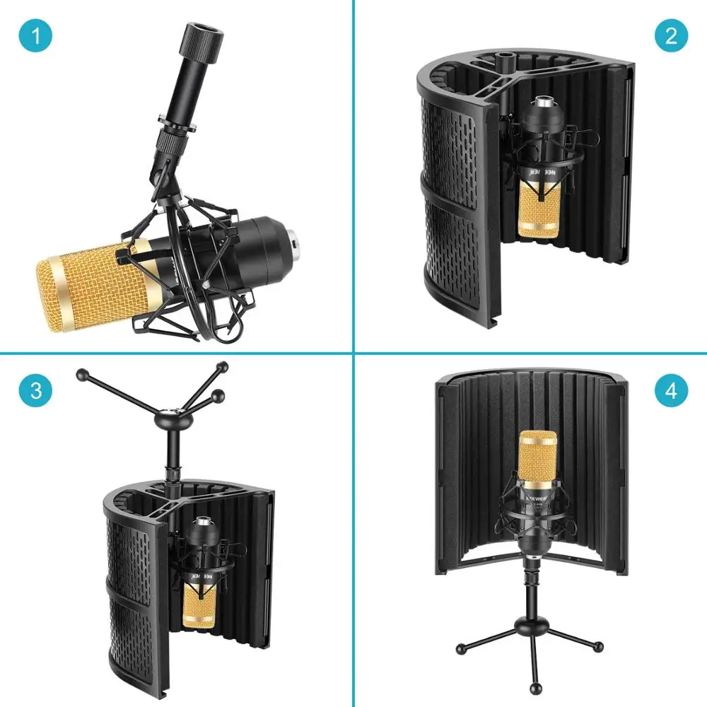 Neewer Tabletop Compact Microphone Isolation Shield with Absorbing Foam, Conderser Microphone, Shock Mount, Tripod Stand, Cable