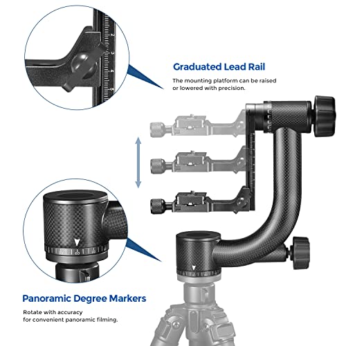 NEEWER Testa per treppiede Gimbal robusta in fibra di carbonio panoramica a 360° con piastra a sgancio rapido standard Arca-Swiss da 1/4 di pollice e livella a bolla per DSLR fino a 13,6kg