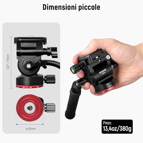 【Costruzione Compatta ma Studiata】 La testa del treppiede interamente in metallo è costruita in modo robusto con una capacità di carico massima di 6,6 lb/3kg. Con un design compatto, misura 7,16" x 3,6" x 3,07" / 182 x 92 x 78mm