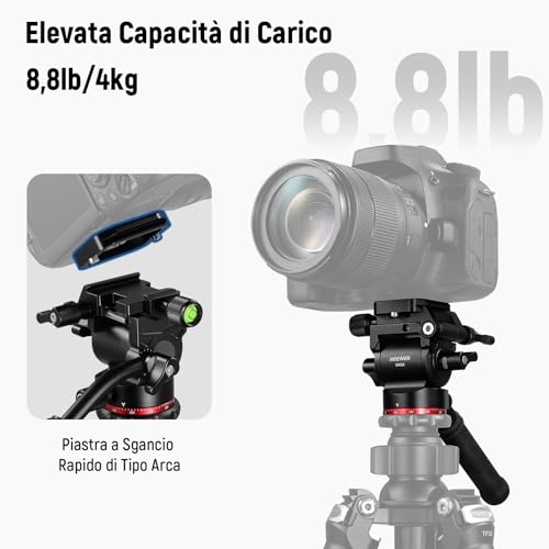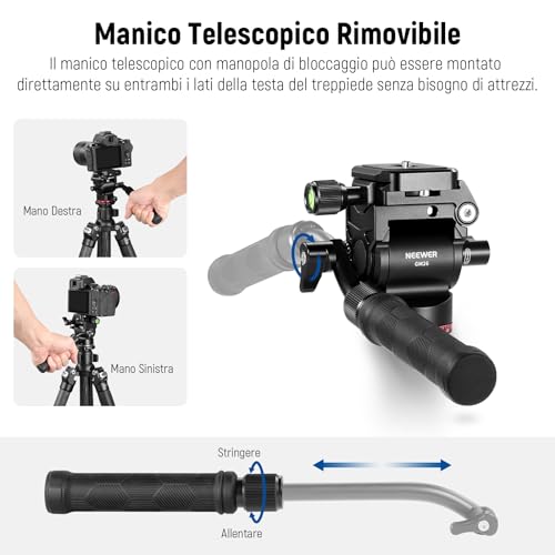 NEEWER Testa Treppiede Video Aggiornata Interruttore Verticale/Orizzontale, Testa Fluida Pan Tilt Metallo, Piastra QR Tipo Arca, Maniglia Telescopica, Base Scalata(⌀43mm) Camcorder/DSLR, Max 3kg, GM26