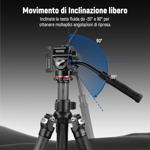 【Pan/Tilt della Fotocamera Fluido e Flessibile】 Con un livello di smorzamento fisso, la testa del treppiede fluido fornisce una tensione adeguata per un movimento fluido di pitch e pan della fotocamera. Supporta una panoramica a 360° e un'inclinazione da -55° a 90° per consentire facilmente la fotografia da più angolazioni e facilitare le riprese video. Una livella a bolla d'aria aiuta a mantenere l'orizzonte dritto.