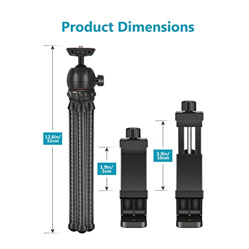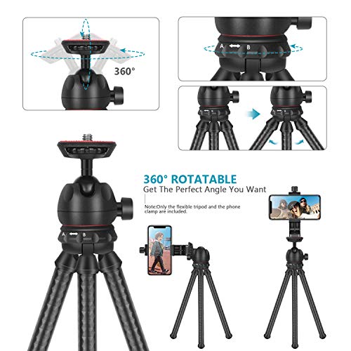 Neewer Treppiede Flessibile 12 pollici con Montaggio a Vite 1/4 pollice e Testa a Sfera Girevole da 360 Gradi Clip per iPhone Samsung Huawei Smartphone e Fotocamera DSLR per Fotografia Video Foto