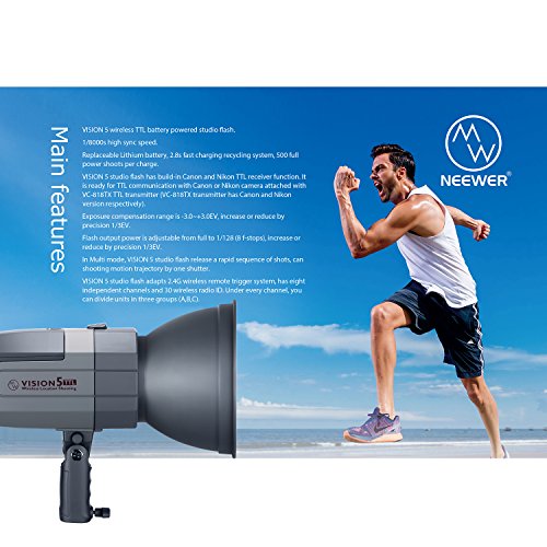 Neewer VISION5 400Ws 2,4G TTL Flash Strobe Compatibile con Canon DSLR Fotocamere, 1/8000s HSS Monoluce con Wireless Trigger, 6000mAh Batteria per 500 Scatti a Piena Potenza Riciclo 0,01-2,8 Secondi