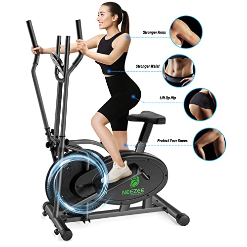 Neezee - Bici ellittica, cyclette cross-trainer, con monitor LCD, attrezzatura per allenamento 2 in 1, peso massimo 120 kg, con resistenza magnetica regolabile, per fitness e allenamento cardio