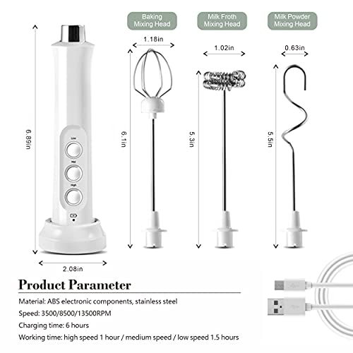 Nefelibata - Montalatte manuale, carica senza fili, 3 velocità, per caffè, latte, uova e bevande (bianco)