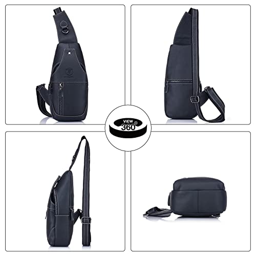 Nefli Borsello Uomo Tracolla Pelle Borsa Monospalla Casual Zaino Monospalla Antifurto Multiuso per Viaggi Escursioni Ciclismo (Nero)