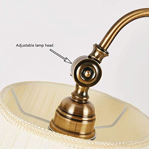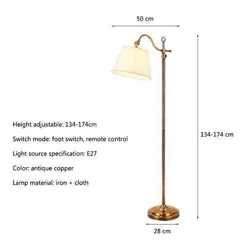 Negcss Lampada da terra in ottone antico, lampada da soggiorno dimmerabile con telecomando, 3 temperature di colore, altezza regolabile 134-174 cm, paralume in tessuto, lampada da terra in metallo per