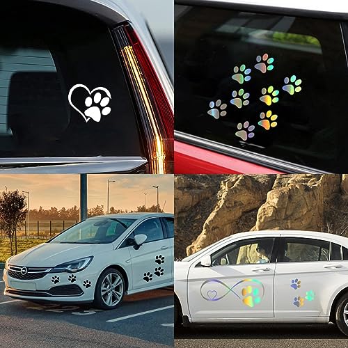 【Pacchetto incluso】Adesivo per auto con zampe di cane da 9 pezzi e ci sono 3 tipi di carte e 3 colori, nero, bianco e laser multicolore.