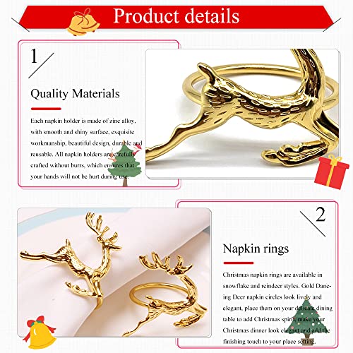Portatovaglioli: i portatovaglioli natalizi sono disponibili negli stili fiocco di neve e renna. I cerchi di tovaglioli di cervo danzanti dorati sembrano vivaci e chic, posizionali sul tuo delicato tavolo da pranzo per aggiungere lo spirito natalizio, rendi la tua cena di Natale elegante e aggiungi il tocco finale al tuo locale.