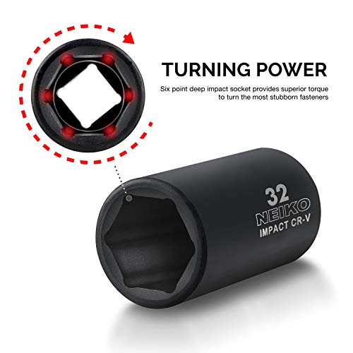 Neiko 02440A 3/8 Inch Drive Impact Socket Set, CR-V Steel, SAE & Metric | 44-Piece Assortment