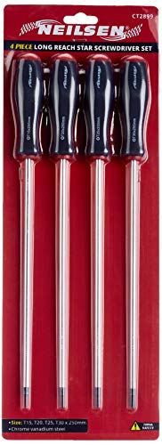 Neilsen CT2899 - Set di 4 cacciaviti TORX a stella extra lunga, 250 mm, T15, T20, T25, T30 X 250, colore: Argento