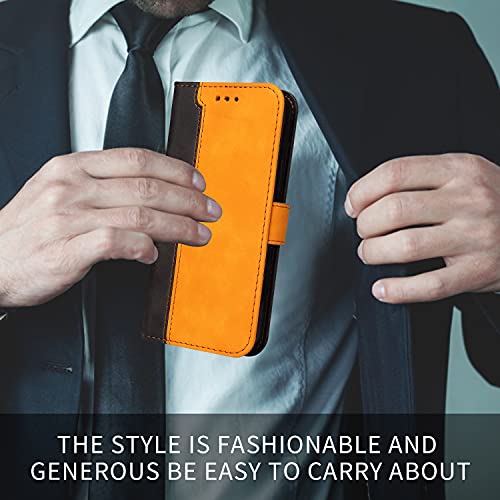 NEINEI Cover per OnePlus Nord CE 5G Custodia,Flip Case Portafoglio in PU Pelle con [Slot per Schede][Magnetico][Attività Commerciale],Telefono Libro Custodie,Arancia