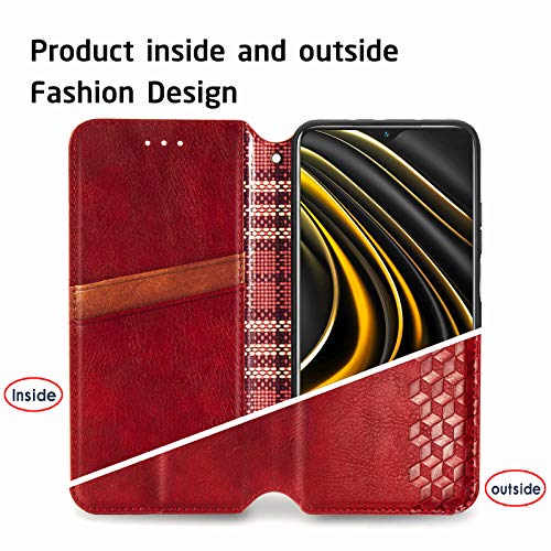 NEINEI Cover in Pelle per OPPO A74 4G Custodia,Folio PU/TPU Portafoglio Case con Slot per Schede,Magnetica,Supporto,Design Vintage Telefono Libro Custodie-Rosso