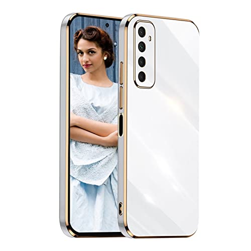 NEINEI Cover per Realme 6,Custodia Design Semplice Ultra Sottile Placcatura TPU,Colori Luminosi Specchio Silicone Antiurto Custodie Case Cover,Bianca