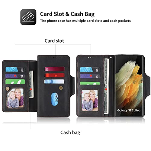 NEINEI Cover per Xiaomi 12 Pro 5G,Custodia in Pelle Portafoglio con [9 Slot per Schede][Supporto][Magnetico][Protezione a 360°],Flip Folio TPU/PU Libro Case,Nero
