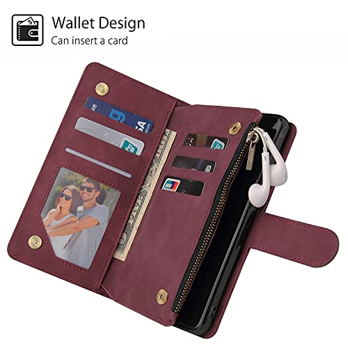 NEINEI Folio Cover per Samsung Galaxy A53 5G,Custodia Flip in Pelle con [Slot per Schede] [Supporto] [Magnetico],Design con Cerniera PU Portafoglio Custodie Case,Rosso