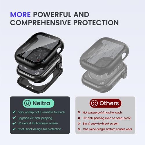 Neitra (2 in 1) Custodia per Apple Watch Series Protettiva Impermeabile Serie 9 8 7 Cover 41mm, Privacy Pellicola Protettiva Impermeabile Anti-Spia Vetro Temperato Cover Duro PC Antiurto Custodia