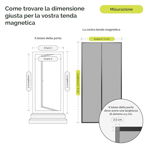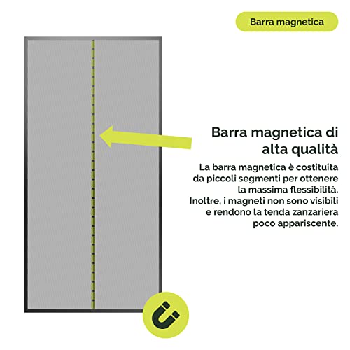 FACILE DA INSTALLARE - La tenda zanzariera magnetica per finestre e porte 100 x 210 cm può essere facilmente installata nella porta del balcone senza fori né attrezzi. Le istruzioni sono incluse.