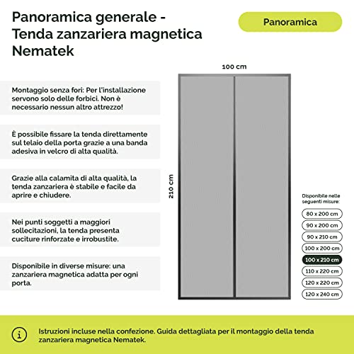 Nematek Zanzariera magnetica per le porte, protezione dagli insetti, con nastro magnetico, zanzariera con montaggio che non necessita di forare le pareti, 100 x 210 cm