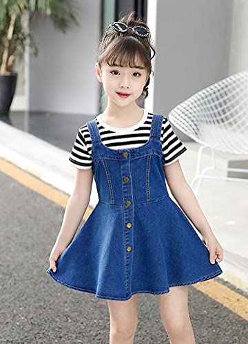 Nemopter - Vestito in jeans da ragazza, con gonna in jeans a maniche corte blu 3 Anni