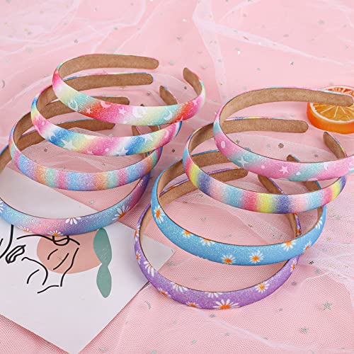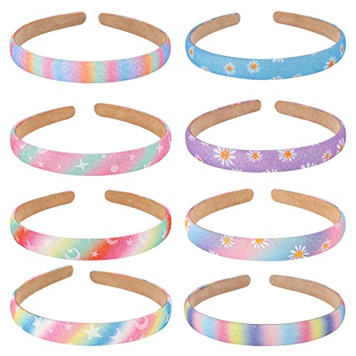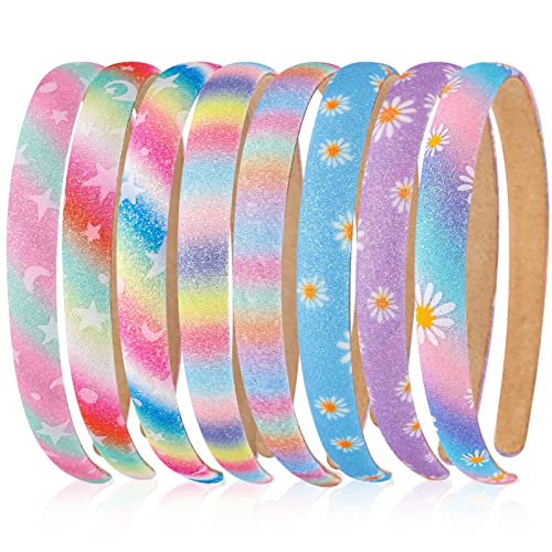 Nenjindz 8 Pezzi Cerchietto Arcobaleno Ragazza Bandiere Bimbi con Stelle Luna e Fiore Headband Glitter per Pasqua Festa Compleanno