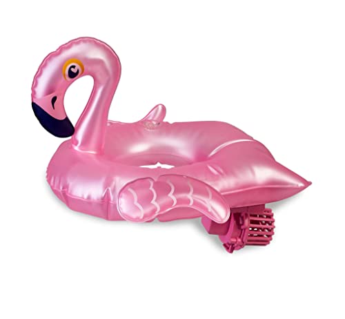 Il salvagente ha un simpatico design con flamingo ed è elettronico: aziona il motore e il salvagente inizierà a muoversi da solo