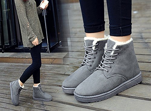 NEOKER Stivali Donna Invernali Stivaletto Neve Scarpe Bassi Scarponi Stringati Rosso Nero Grigio Beige 36-40