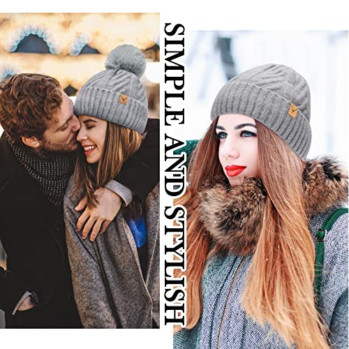 NEOLA Cappello Donna InvernaleBerretto Donna con PON PON Cappello Donna da Sci Beanie in Maglia Fodera in Pile Spesso Caldo Morbido Taglia Unica cap BobbleRegalo Donna Uomo Unisex(Grigio#A)
