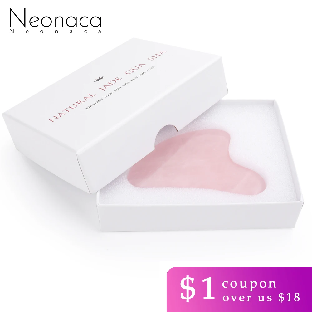 Neonaca Natural Rose Quartz Gua Sha Scraper Board Massage Tool for Face Neck Skin Lifting Wrinkle Remover Skin Beauty Care Gift