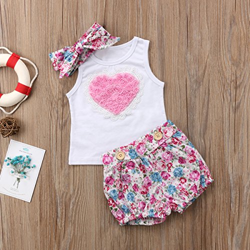Taglia: 0-6 mesi 6-12 mesi 12-18 mesi 18-24 mesi senza maniche abiti corti top pantaloncini, 1T 2T 3T 4T 5T 6T love heart top floreale floreale Suspender Skirt Tuta abiti estivi set