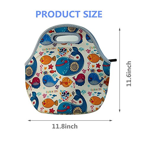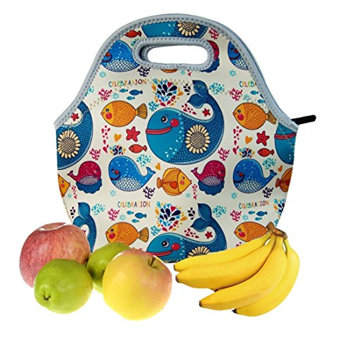 Neoprene il pranzo Borsa a mano per bambini Donne e ragazze isolato impermeabile il pranzo scatola & alimenti contenitore per viaggiare in piena aria lavoro Fish&Beige