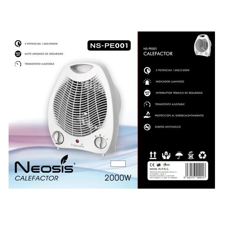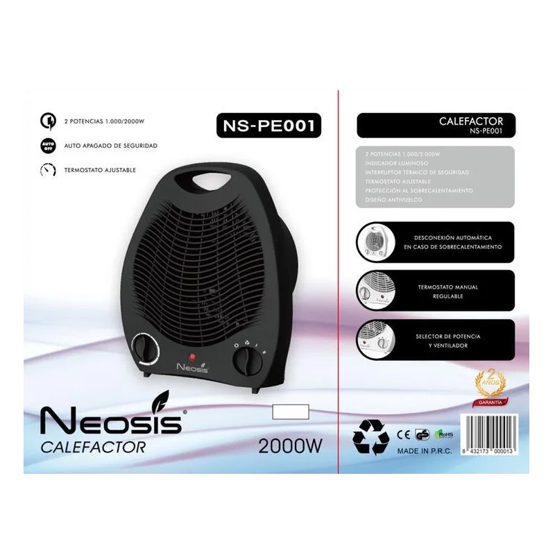 Neosis electric heater NS-PE001 2 powers 1000/2000W Auto safety off adjustable thermostat light indicator