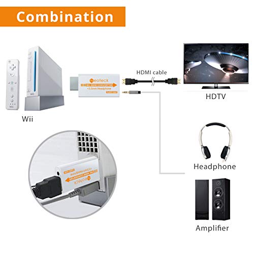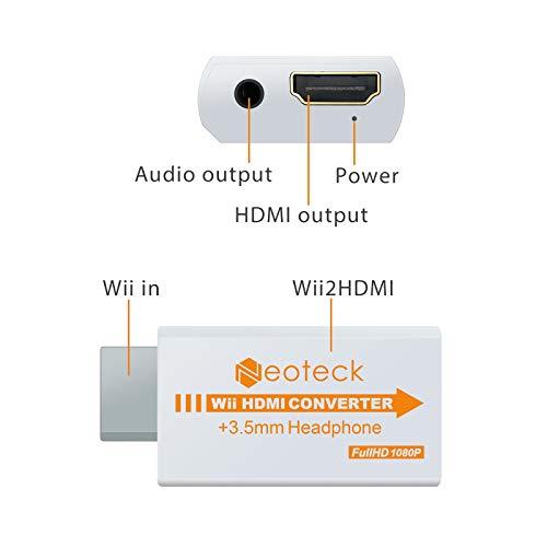 Neoteck 1080P Convertitore Wii a HDMI Mini Convertitore HD HDTV + 3.5mm Jack con un Cavo HDMI da 1M Supporta Formato NTSC/PAL per Smart TV HDTV - Bianco