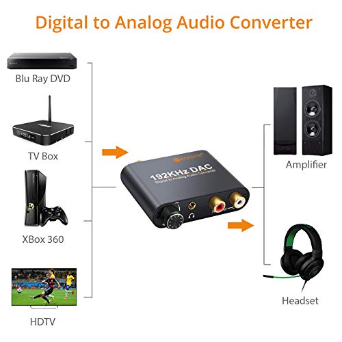 DAC - convertitore: il convertitore converte coassiale - o Toslink segnale audio digitale in analogico L / R RCA audio e supporta la comunicazione con dispositivi esterni, come amplificatori 3, cavi 5 mm dal cuffie.