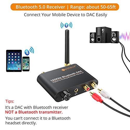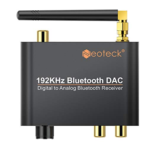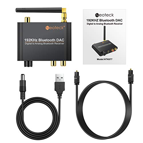 Neoteck DAC Convertitore 192Khz con Ricevitore Bluetooth 5.0 Controllo Volume - Digitale SPDIF Coaxial Toslink ad Analogico Stereo L/R RCA 3.5mm Jack Audio con USB Cavo Ottico per PS3 DVD PS4 Sky