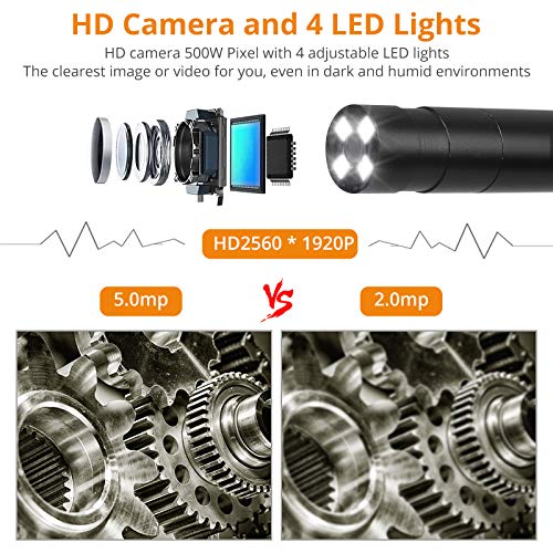 【5 Megapixel Alta Risoluzione e 4 LED】L'Endoscopio Wireless HD Dotato di Fotocamera HD con Risoluzione 2560 * 1920P da 5 Megapixel, Ti Offre Una Grande Esperienza di Registrazione di Video HD Chiari e Immagini Istantanee. Con 4 LDE Regolabili, Puoi Osservare Chiaramente i Luoghi Bui.