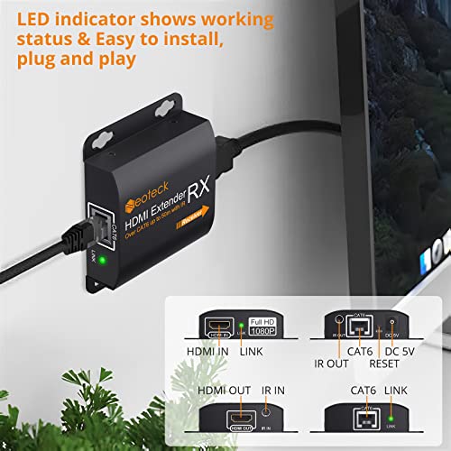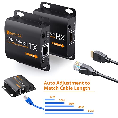 Neoteck Extender di Rete Ethernet 1080P HDMI Extender con Telecomando IR Ripetitore Funzione POE HDMI Ripetitore Segnale di Estensione 50m per PC/DVD/Sky HD Box/PS3/PS4/Satellite Box Ecc