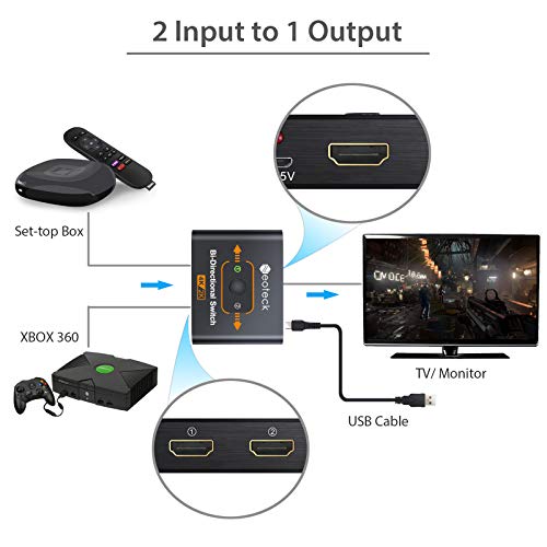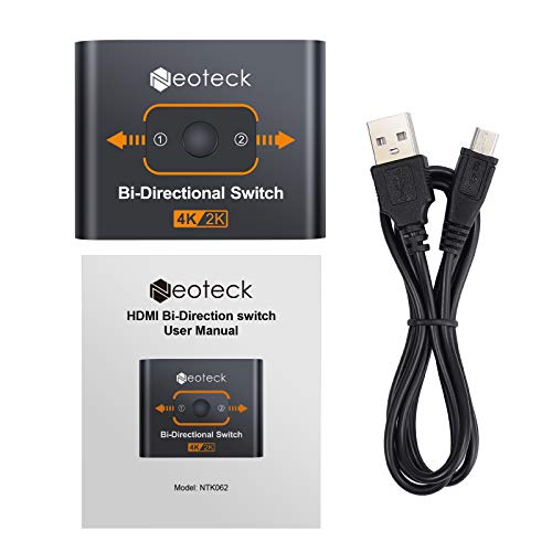 Neoteck 4K HDMI Switch Bidirezionale 2 Porte HDMI Switcher 2 Ingresso 1 Uscita Supporta 3D 2160P HDMI Splitter Plug e Play per HDTV Blu-Ray DVD Satellite DVR PS3 PS4 Stick Fire TV ROKU Apple TV