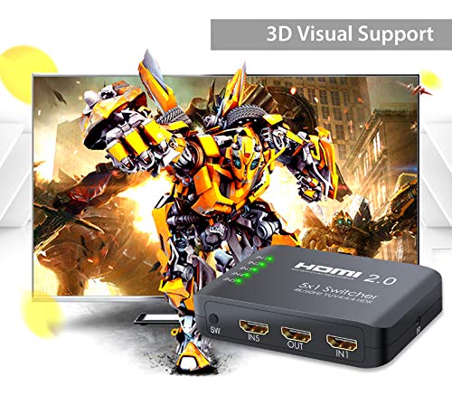 【Alta Risoluzione】 Questo Switcher HDMI Può Supporta Fino a 4K@60Hz(YUV 4:4:4) e HDR che Ti Porterà la Vera Esperienza Visiva. (Se Vuoi Sperimentare 4K @ 60Hz (YUV 4: 4: 4) ed Effetti HDR, S i Prega di Utilizzare i Cavi HDMI 2.0 (HDMI 19 + 1, 26AW) per Collegare Tutti i Tuoi Dispositivi)