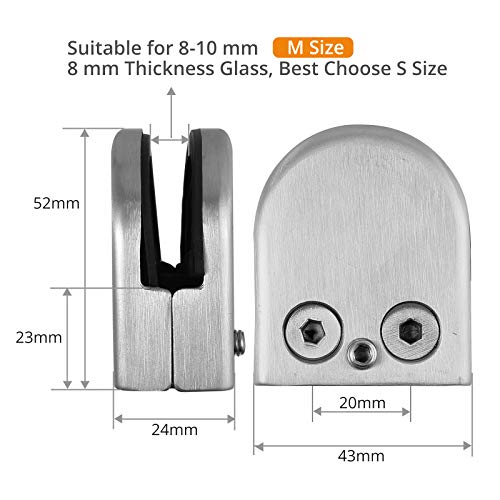 【Dimensione】8 Pezzi di Supporto Vetro, Dimensione: 52 x 43 x 24 mm, Adatto per Vetro 8-10mm